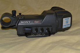 The Sony BVF-20wce 2-inch type 16:9 widescreen B/W CRT viewfinder for the portable camera *High resolution-600 TV lines at centre. 16:9 and 4:3 *The eye-piece is removable from the viewfinder to allow direct view of the CRT *Tally indicators on both front and rear of the viewfinder as well as on the screen of the viewfinder. No microphone fitted.